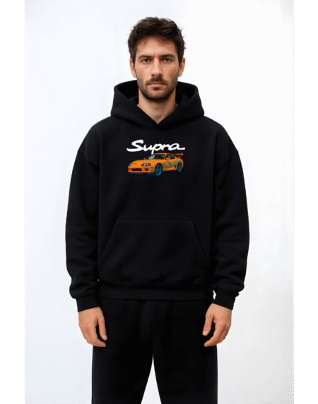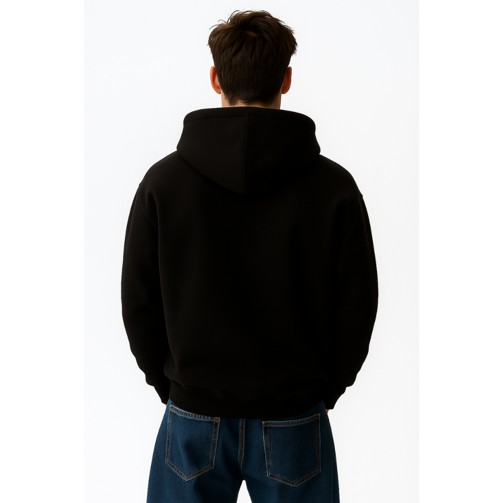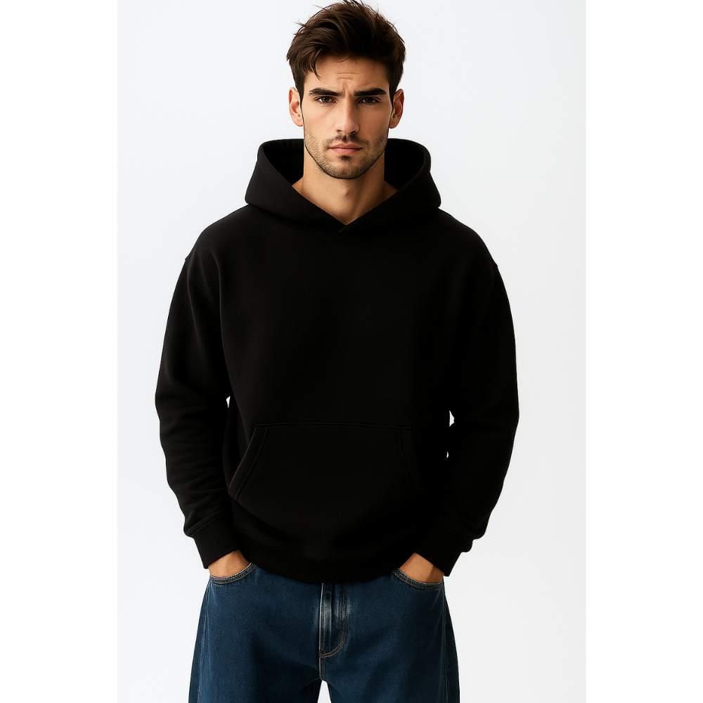 Designed with a clean minimalist aesthetic, it features a spacious kangaroo pocket, sturdy drawstrings, and finely ribbed cuffs and hem that maintain shape over time. The deep midnight black shade pairs effortlessly with any outfit—jeans, joggers, or shorts—for a modern, laid-back look.