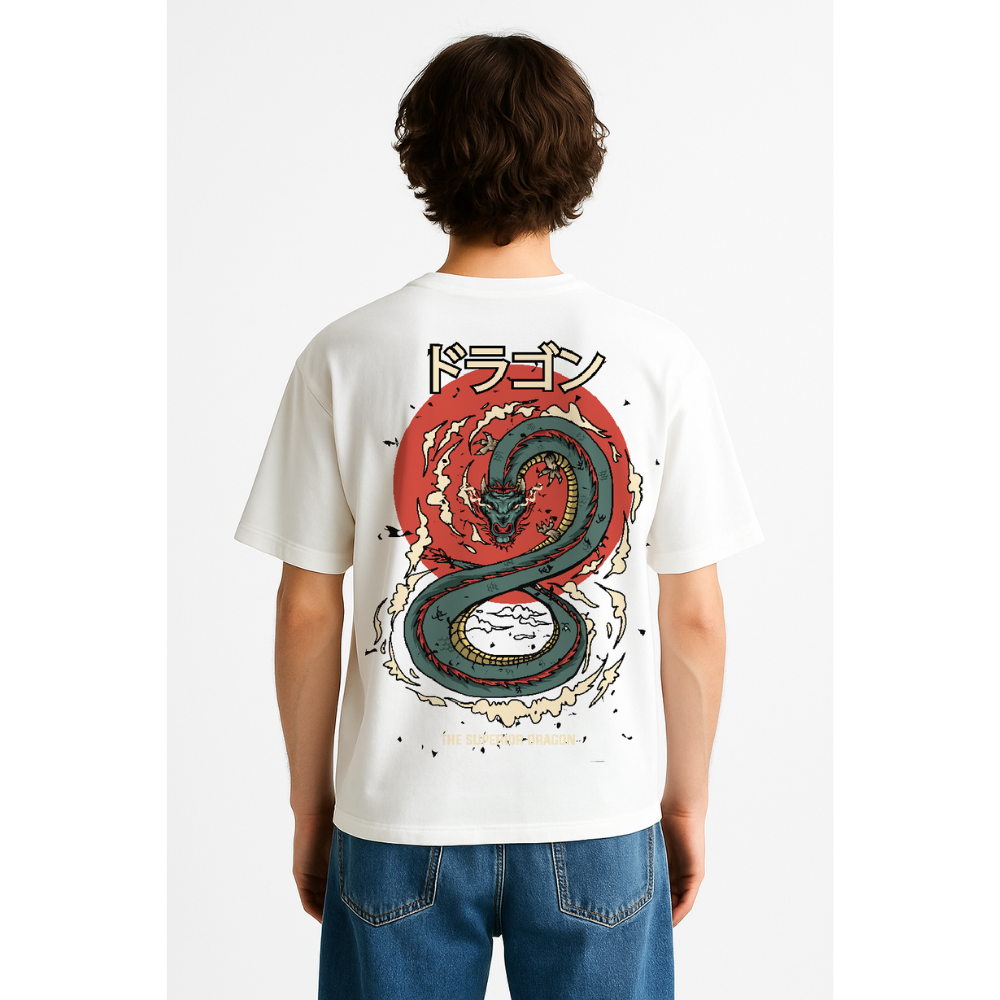 • White Dragon Tee: Inspired by Japanese mythology, featuring a fierce dragon wrapped in striking red sun artwork.