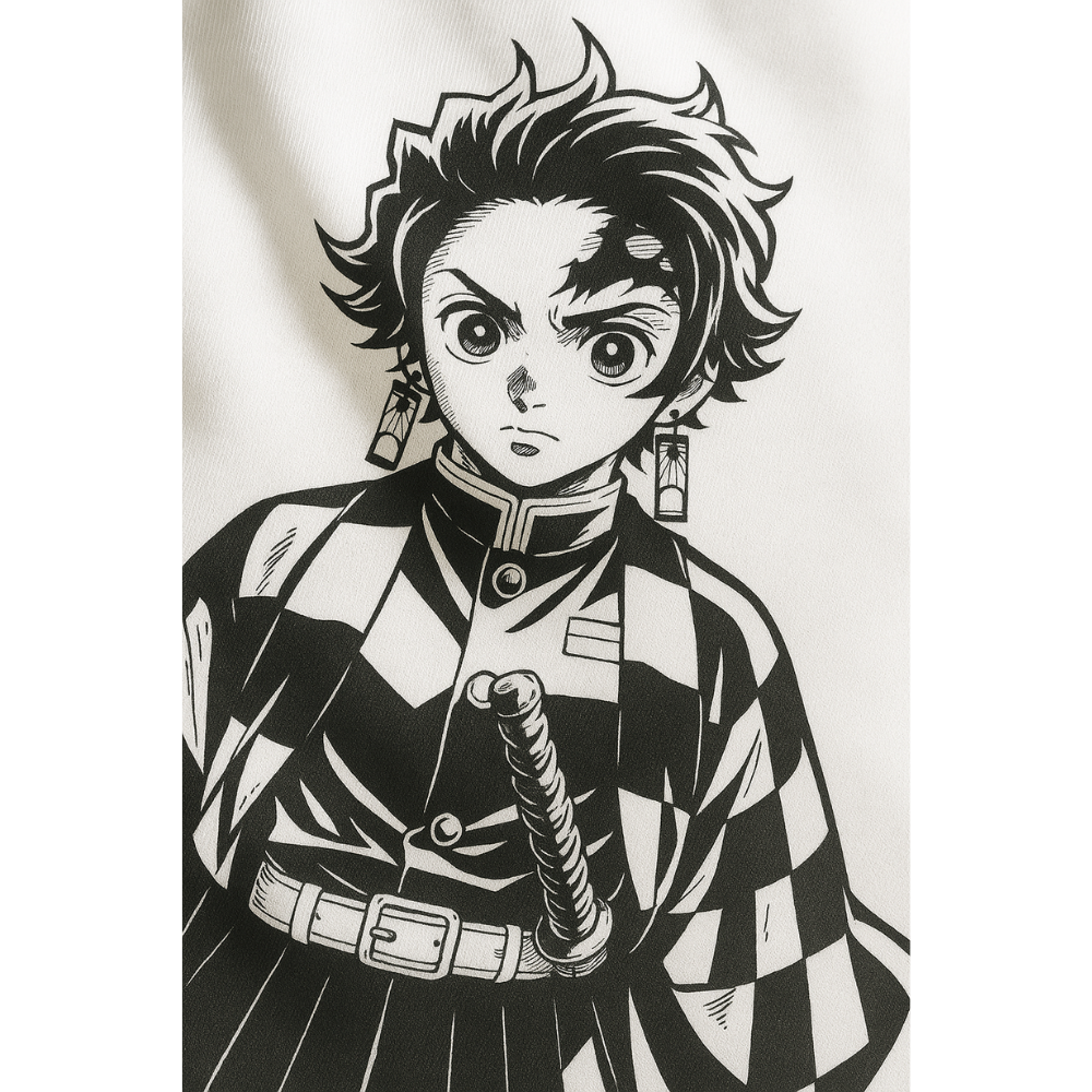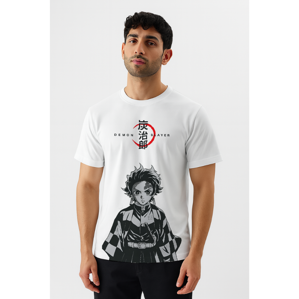 Featuring a bold monochrome graphic of Tanjiro Kamado paired with minimalist typography and a striking red accent, this T-shirt combines iconic anime aesthetics with clean, modern streetwear style. Whether you’re stepping out with friends, attending a fan event, or showcasing your love for Demon Slayer, this tee guarantees standout looks with all-day comfort.