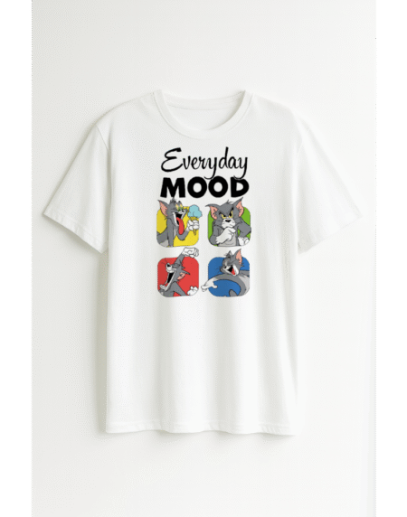 Bring your everyday vibes to life with this premium 180 GSM classic fit cotton T-shirt. Crafted from 100% soft, breathable cotton, it offers unmatched comfort with a timeless silhouette that’s perfect for casual outings, lounging, or everyday wear. The bold “Everyday Mood” print with expressive cartoon graphics adds a playful twist to your daily style — making it a must-have for anyone who loves fun, comfort, and personality in their fashion.