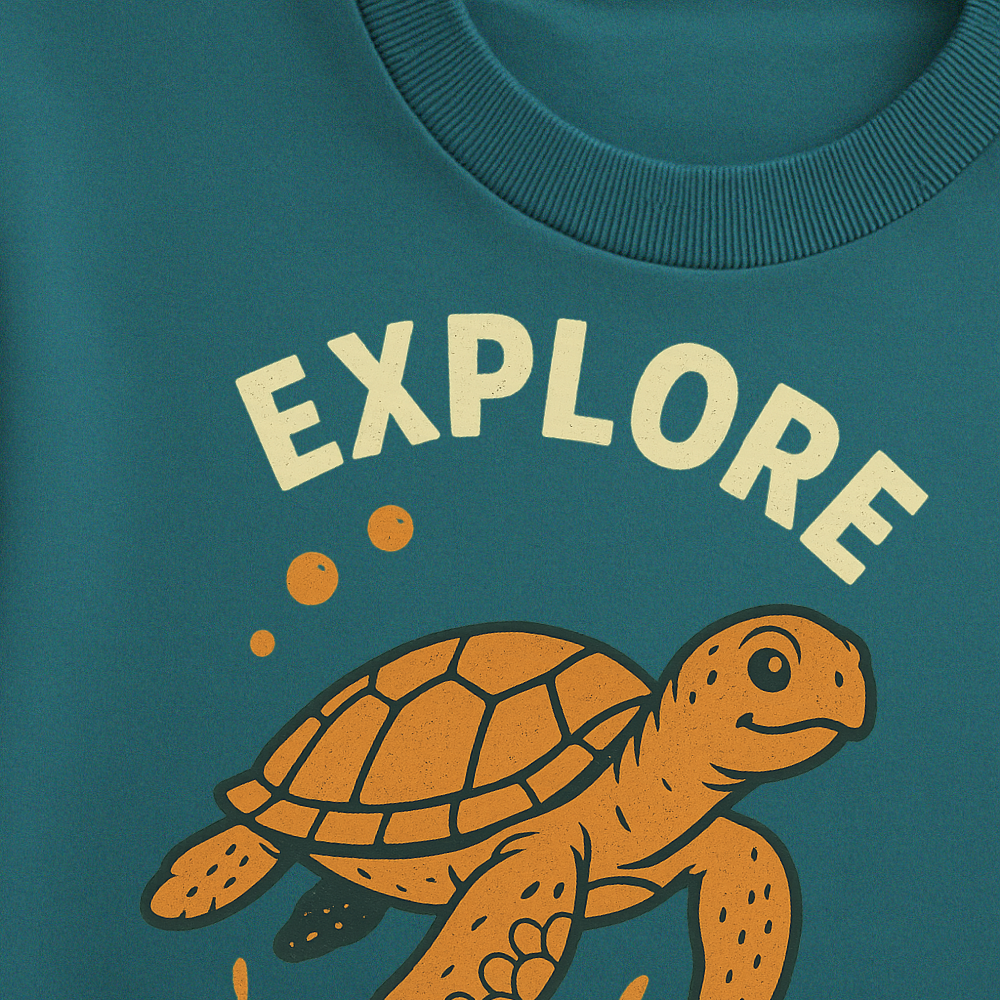 Bold “Explore” turtle graphic print