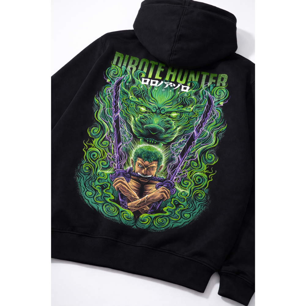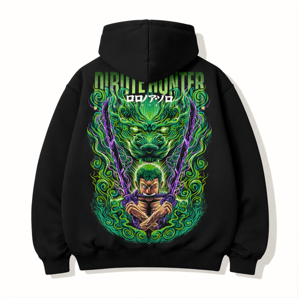 Unleash your inner warrior with this premium 100% cotton hoodie, inspired by fearless spirit and unbreakable will. Featuring a power-packed back graphic with intense green energy, dual swords, and a beastly aura, this hoodie is built for those who never back down. The clean front Zoro emblem keeps it sharp, minimal, and deadly.
