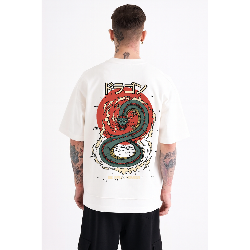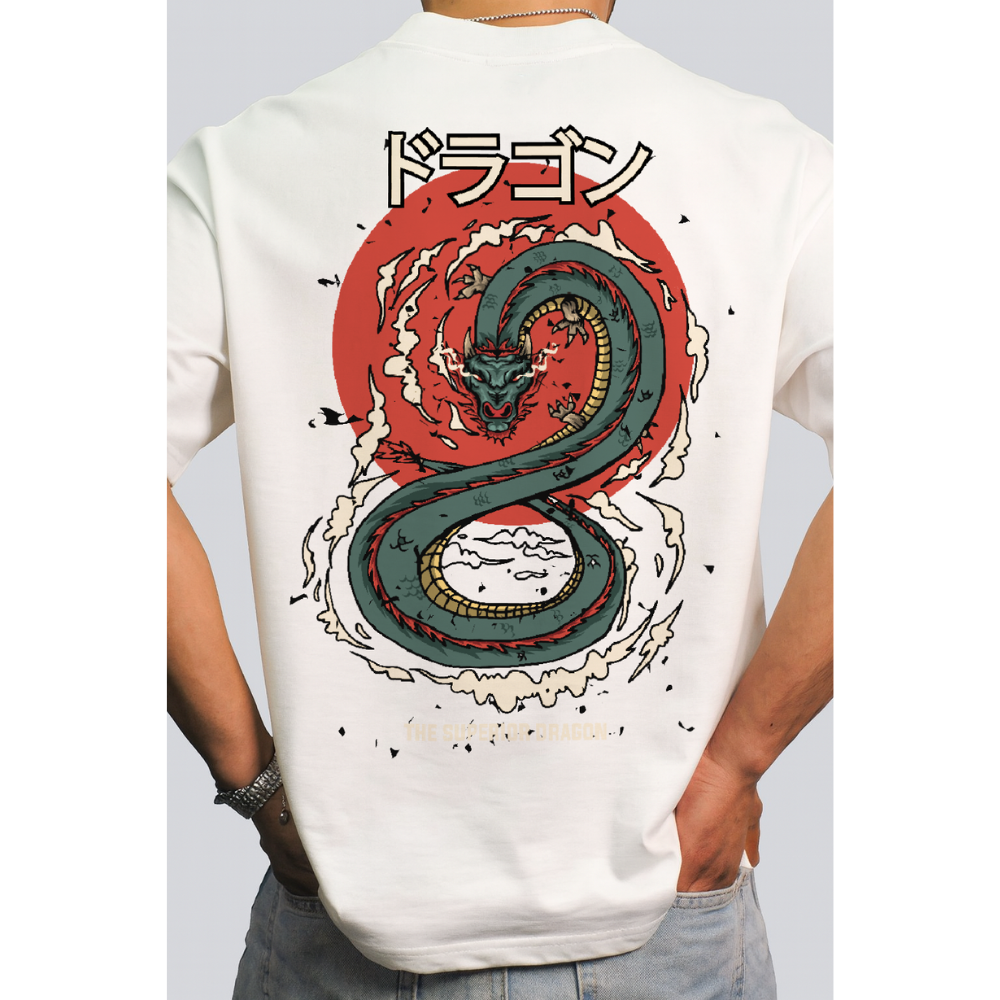 Unleash the power of the dragon with this bold, Japanese-inspired oversized T-shirt crafted from 220 GSM 100% premium cotton for ultimate comfort, durability, and structure. Designed for streetwear lovers and anime enthusiasts alike, this statement piece features a striking serpentine dragon graphic entwined with fiery energy on the back, and minimalist Japanese typography on the front. The relaxed oversized fit ensures effortless style and freedom of movement โ€” perfect for casual outings, streetwear fits, or layering in cooler weather.