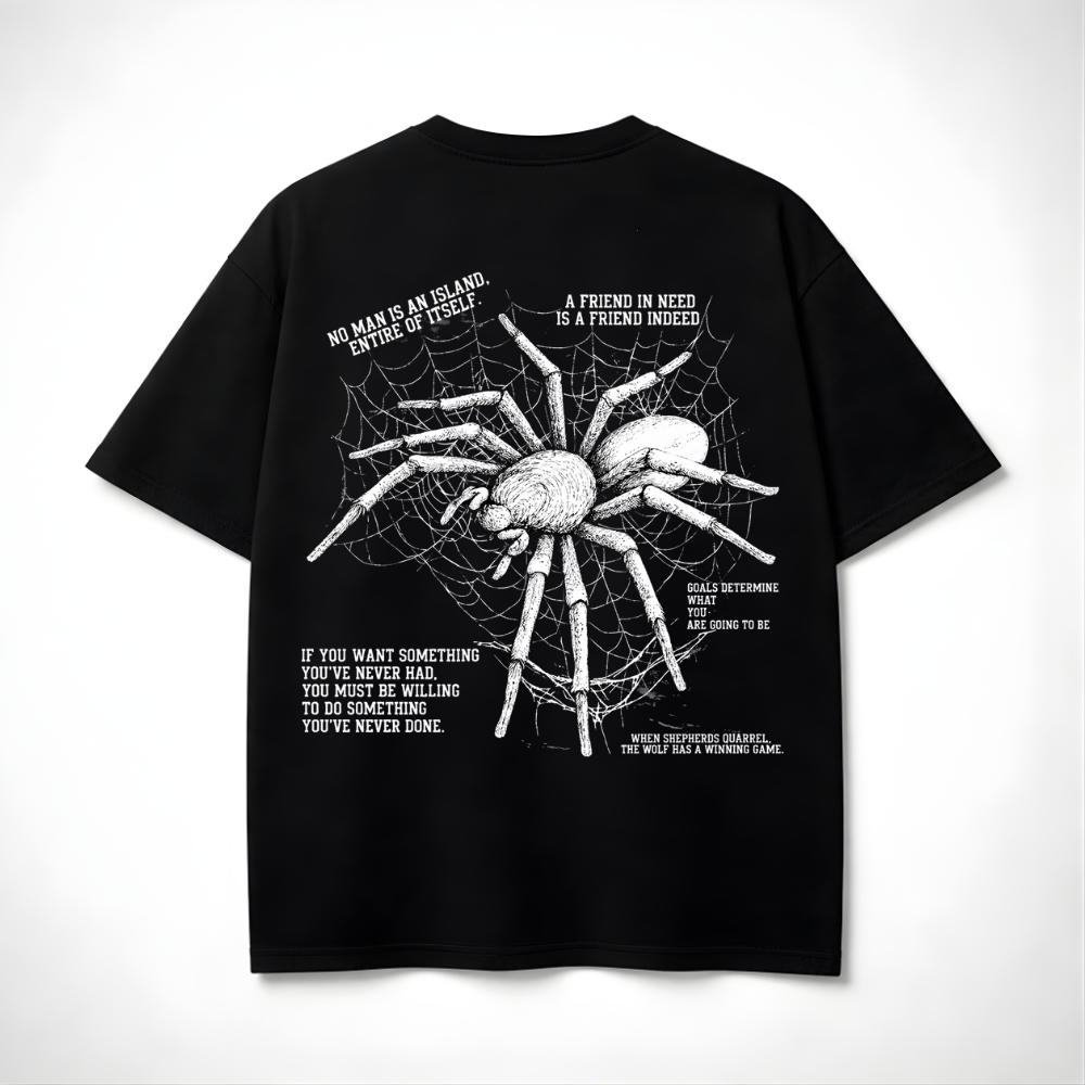 Designed for those who think differently and move with intent, the minimal front graphic keeps it clean, while the detailed back print adds depth and meaning to your style. 🕷️🖤